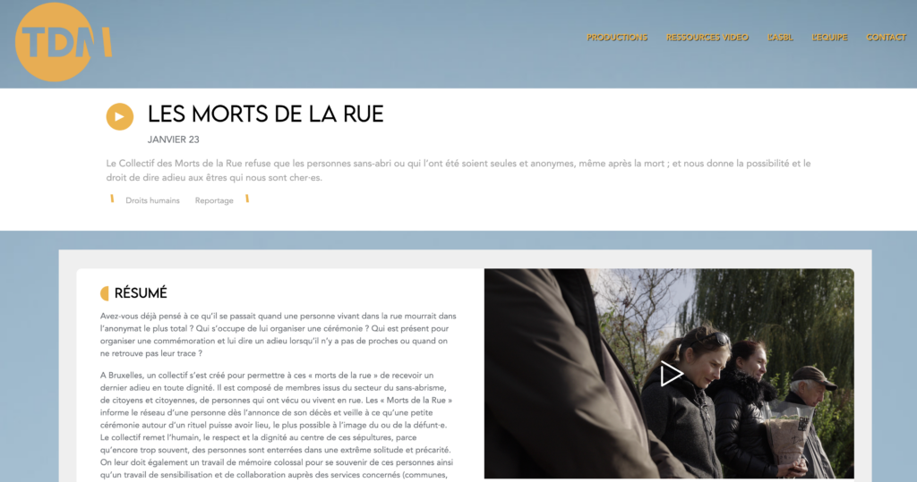 Le Collectif “Les Morts de la Rue” a pour mission d’agir pour un adieu digne pour les habitant.es de la rue en Région Bruxelloise.