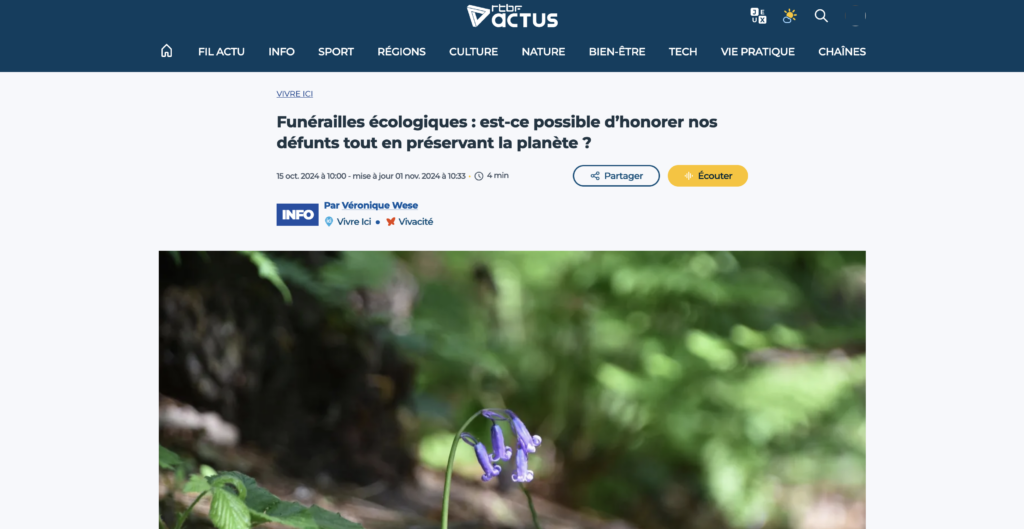 Selon moi, il est impossible de parler d’écologie dans les funérailles, sans remettre en question nos pratiques actuelles. Il ne s’agit pas simplement de proposer un nouveau modèle de cercueil, ou des urnes biodégradables, c’est un véritable changement de narratif de société qui doit s’opérer si l’on souhaite pouvoir pratiquer de véritables changements efficaces et bénéfiques pour les humains et l’environnement. C’est pourquoi je m’engage pour l’étude, la reconnaissance et la légalisation du compostage funéraire comme un nouveau mode de sépulture.